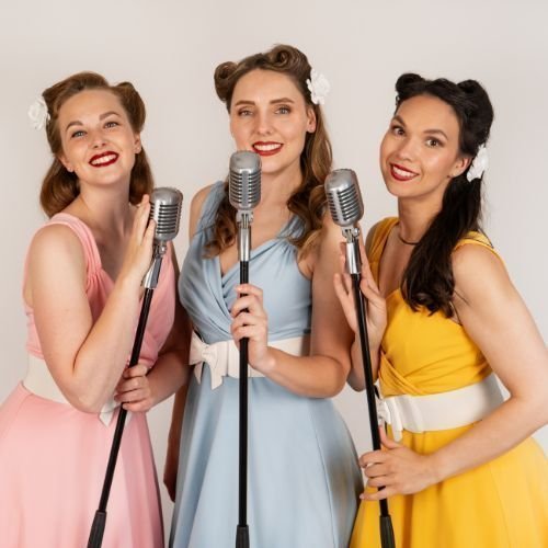 Ben je op zoek naar een elegante en swingende live act met karakter? The Key Sisters zijn een charmante vintage vocalgroep die moeiteloos nostalgie en moderne flair combineert. Met hun driestemmige harmonieën, stijlvolle outfits en subtiele choreografieën brengen zij een optreden dat zowel muzikaal als visueel indruk maakt.